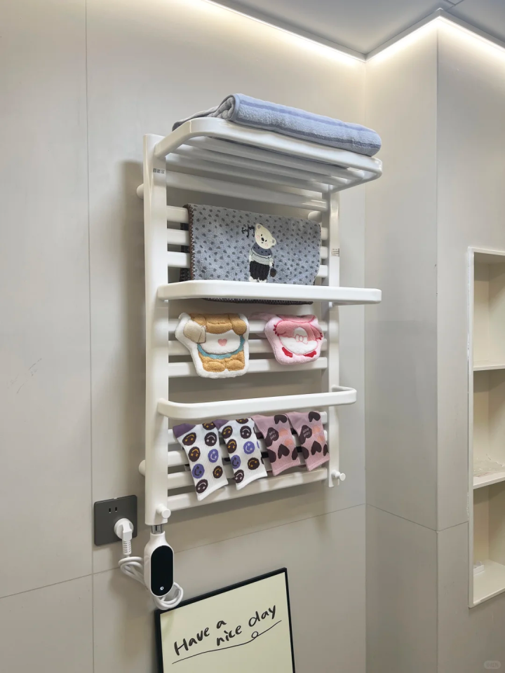 之前我一直觉得“给卫生间专门安装热毛巾架”根本没必要,将毛巾拿到太阳底下晒一晒不就干了吗?